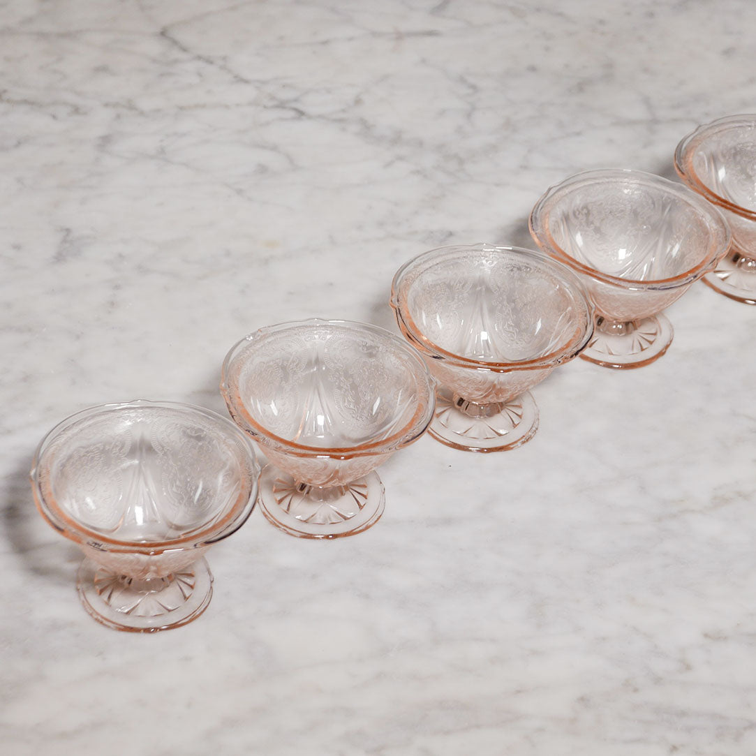 pretty pink ice cream cups all in very good condition! patterned rose buds with thorn crest circa 32.