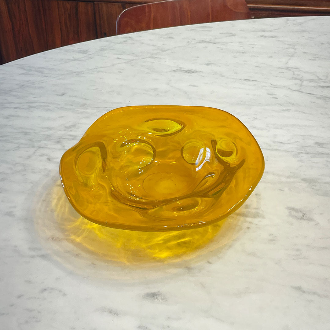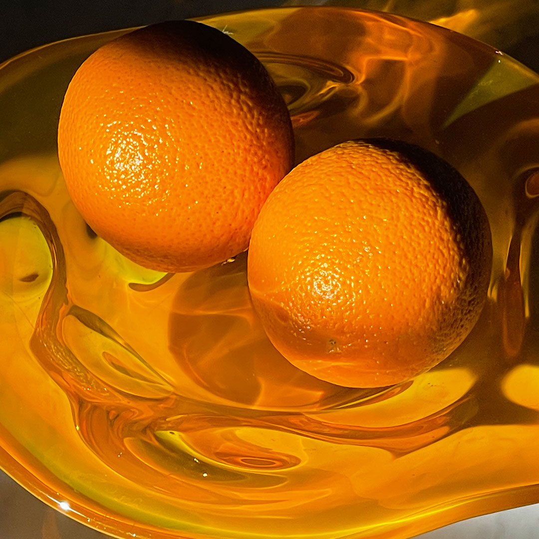 handblown orange art glass bowl. the photos to do not this piece justice! the reflection is to die for! perfect for your fruits.