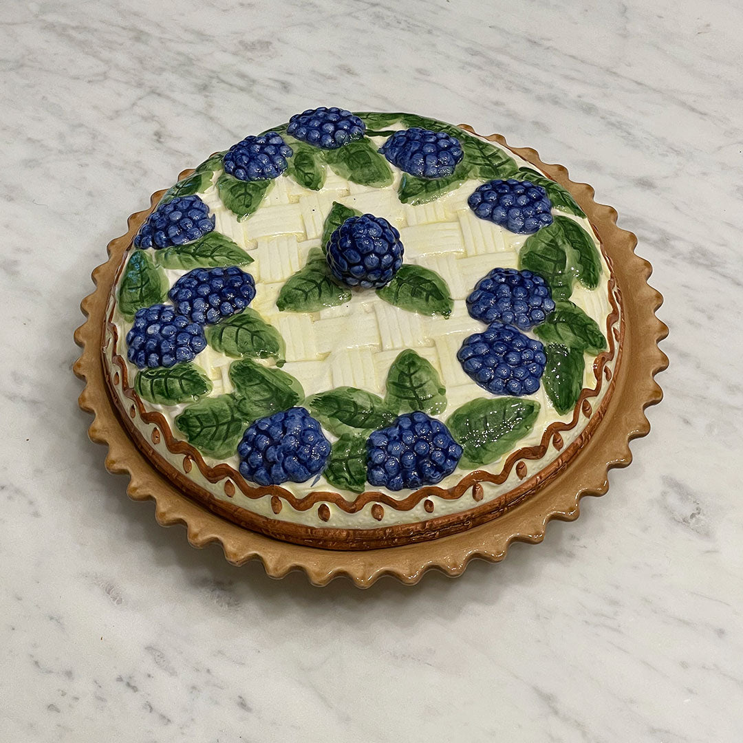 up your pie presentation with this lovely ceramic pie dish. topped with big and bold berries.