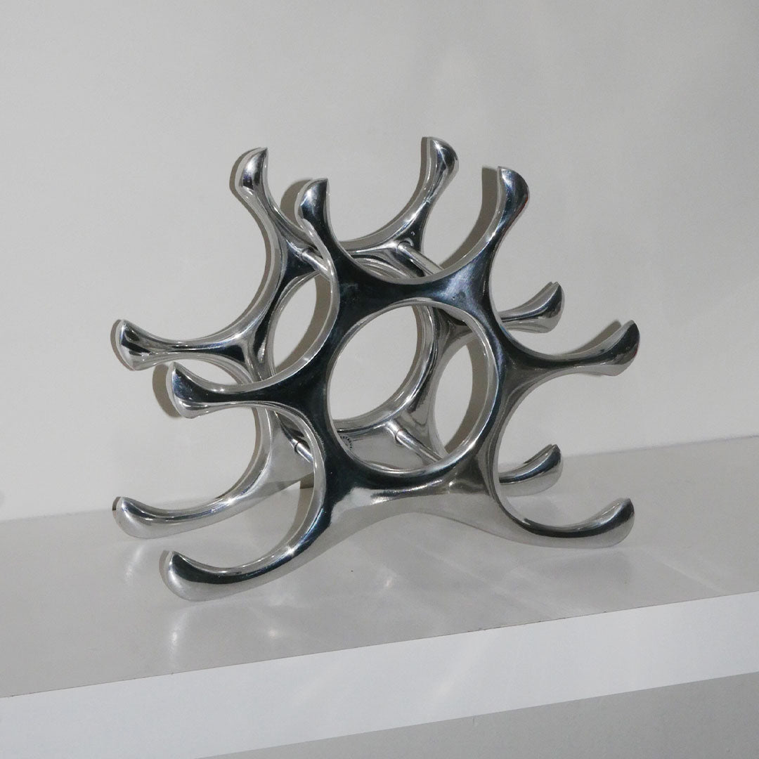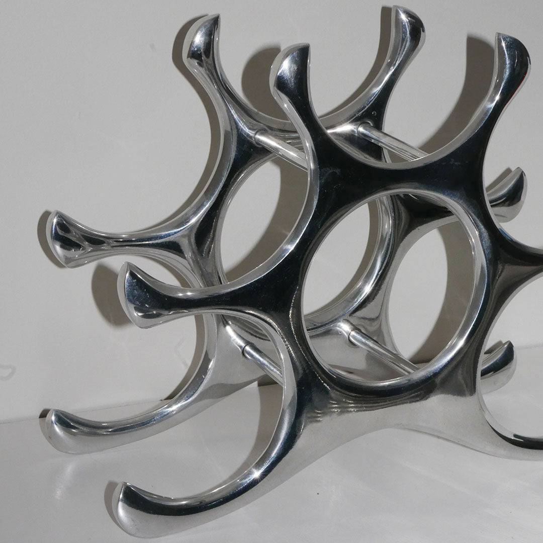 designed to hold 6 standard size bottles of your favourite wine, this sculptural rack offers both style and functionality for the modern wine enthusiast.