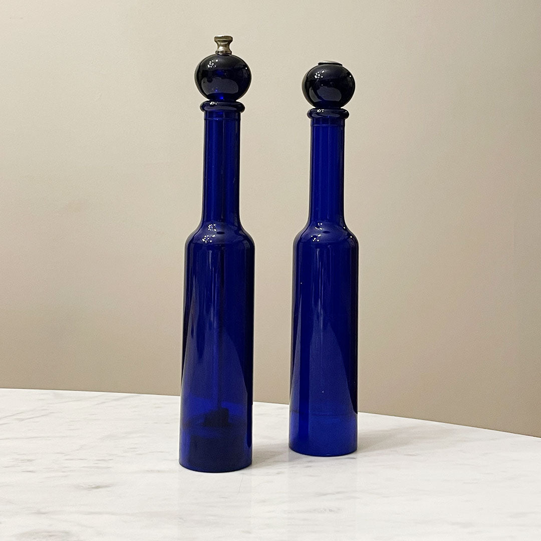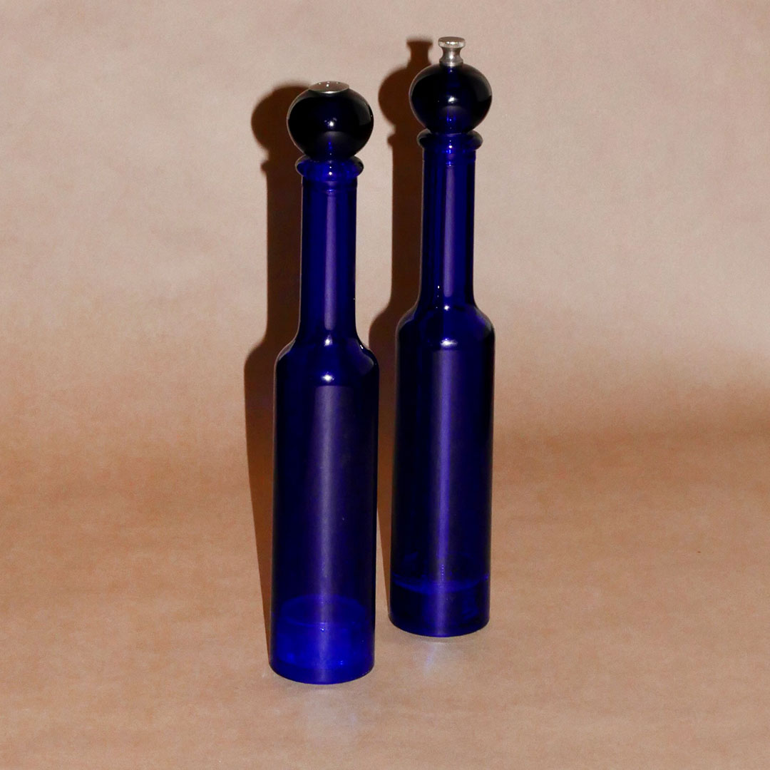 this salt and pepper set is the perfect addition to any table setting or kitchen counter. featuring a stunning cobalt blue colour and durable plastic exterior.