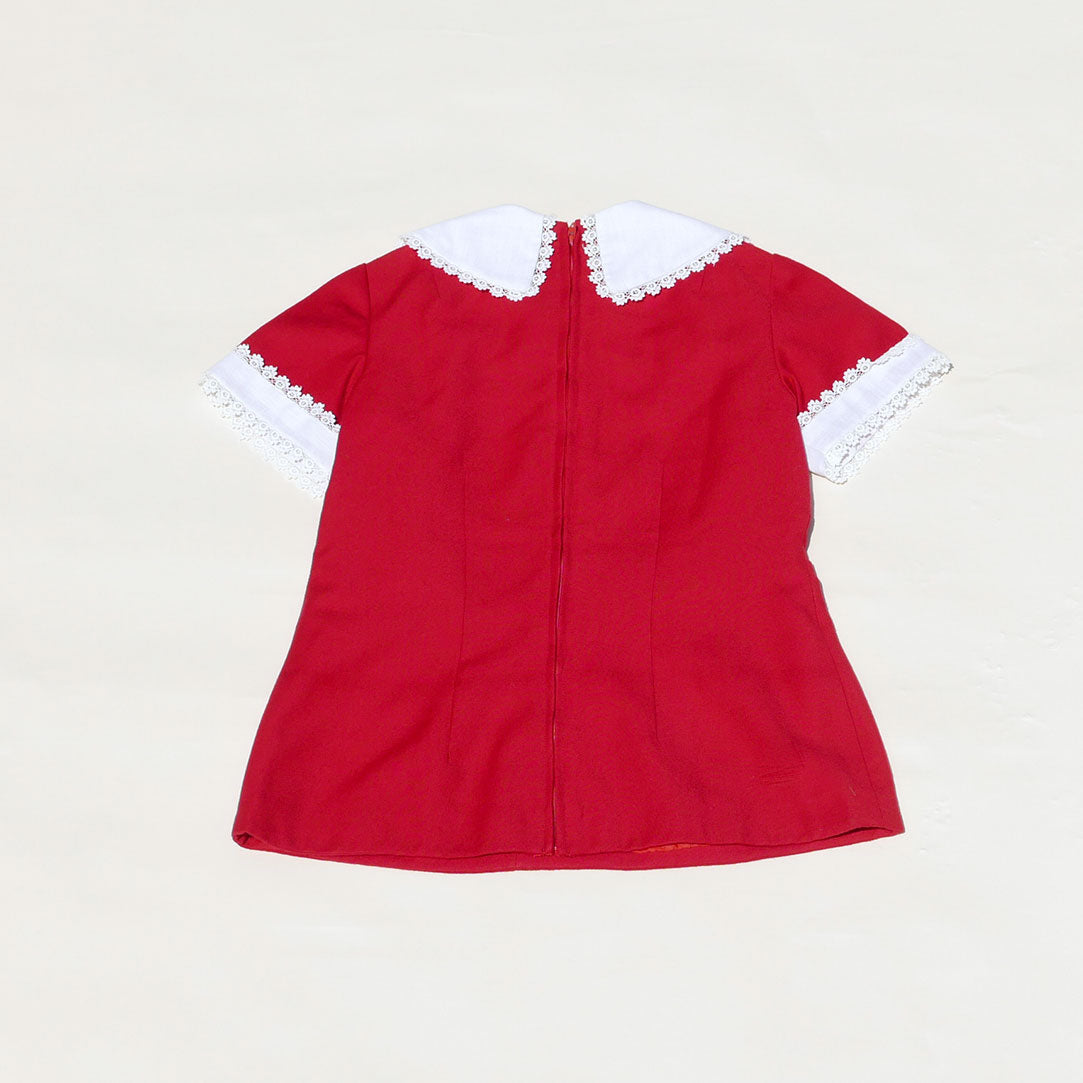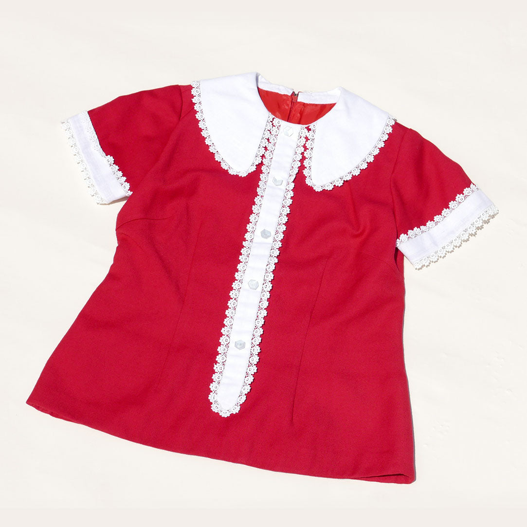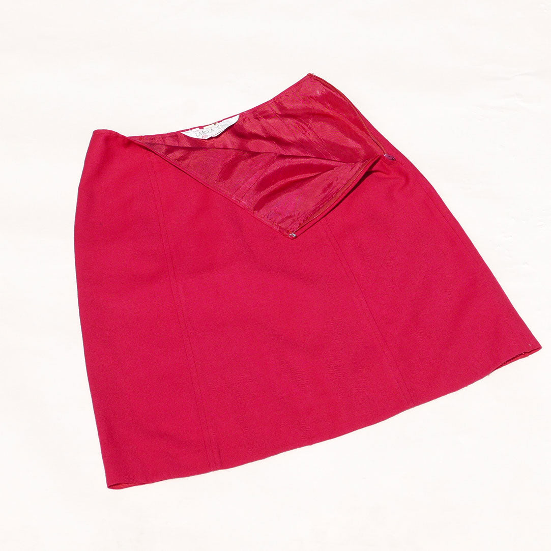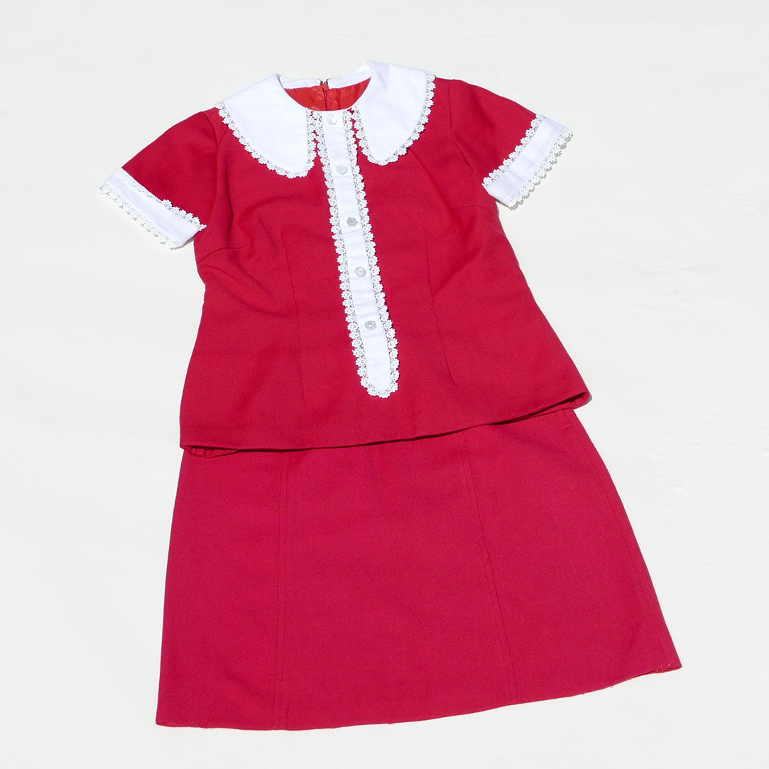 lansea by aljean 2pc red 100% wool suit with delicate white trim. marked size 8 but runs xs/s.