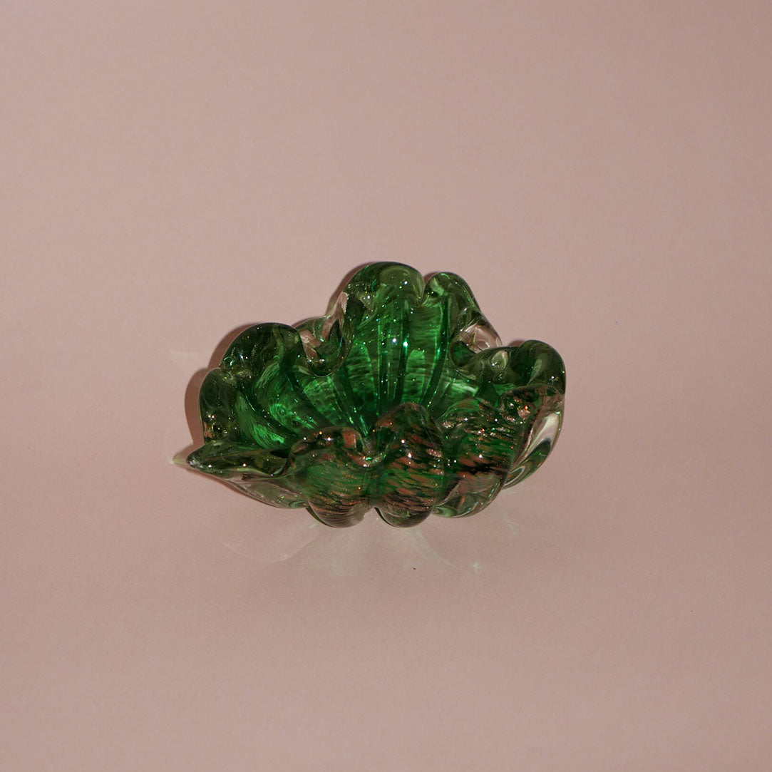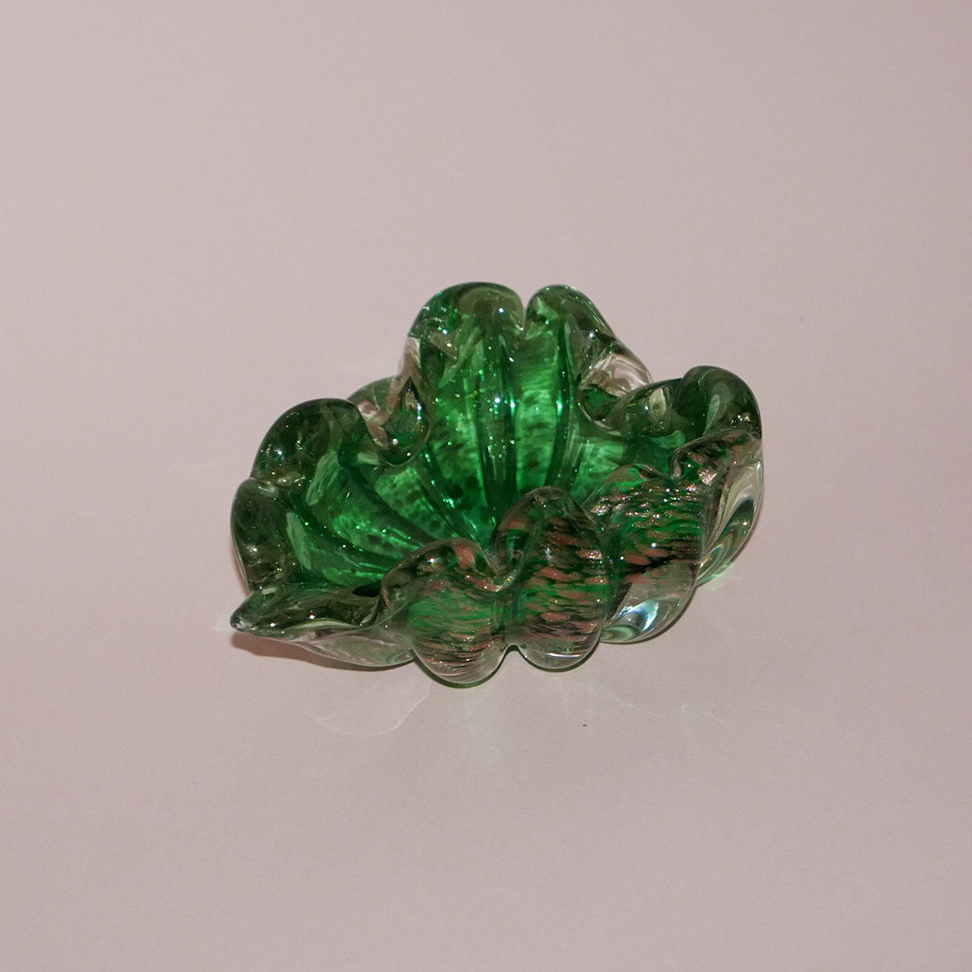 beautiful hand-blown art glass piece in a lovely leaf-shaped design.