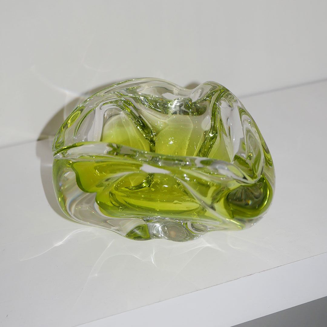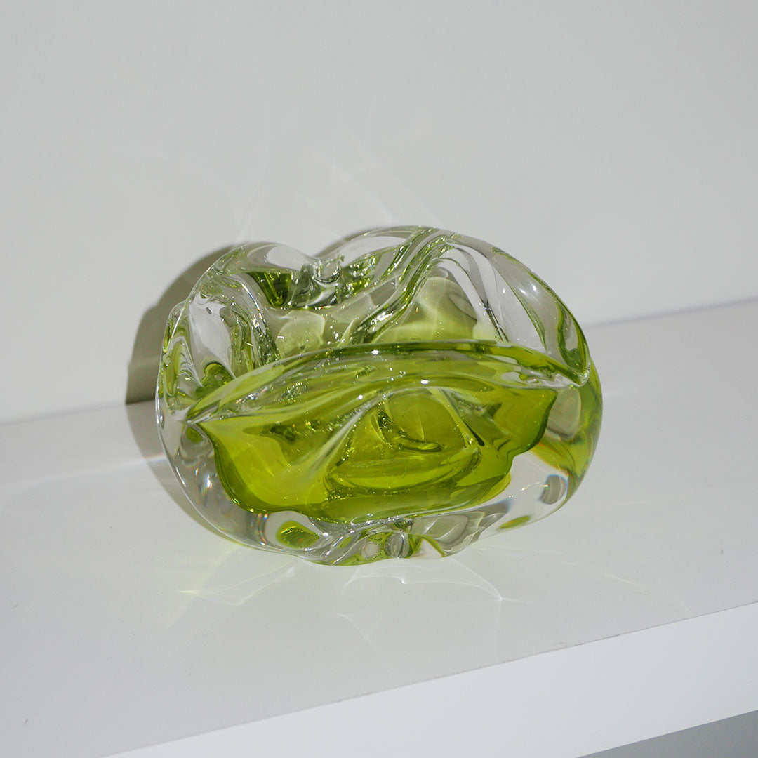 acid green mid century triangle-shaped green murano catchall. stunning!