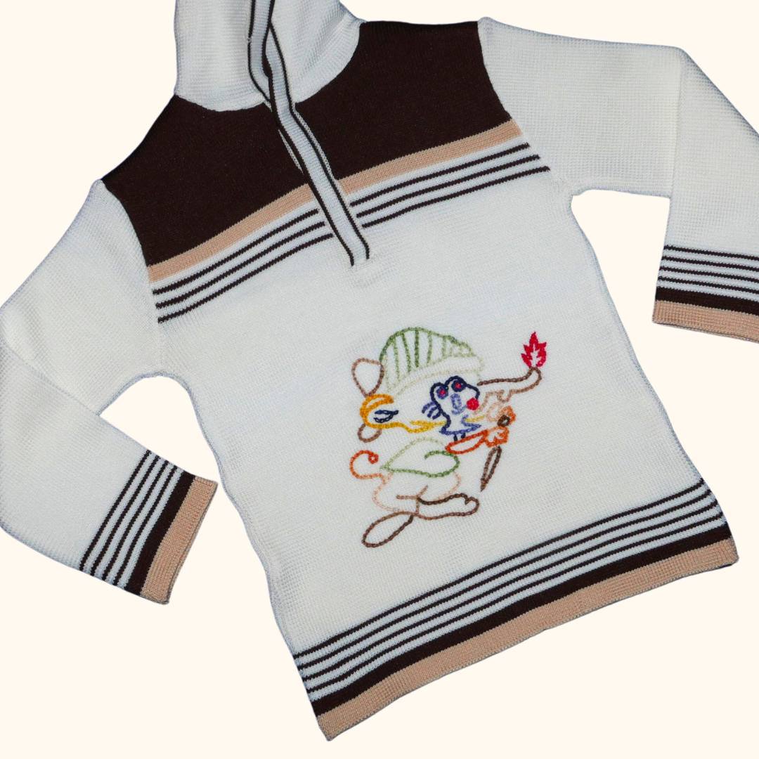 crafted from premium quality materials, it ensures comfort and coziness throughout the winter season. the retro brown trim adds a delightful touch, making it the perfect choice for a special little one.