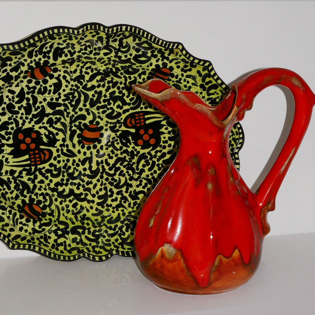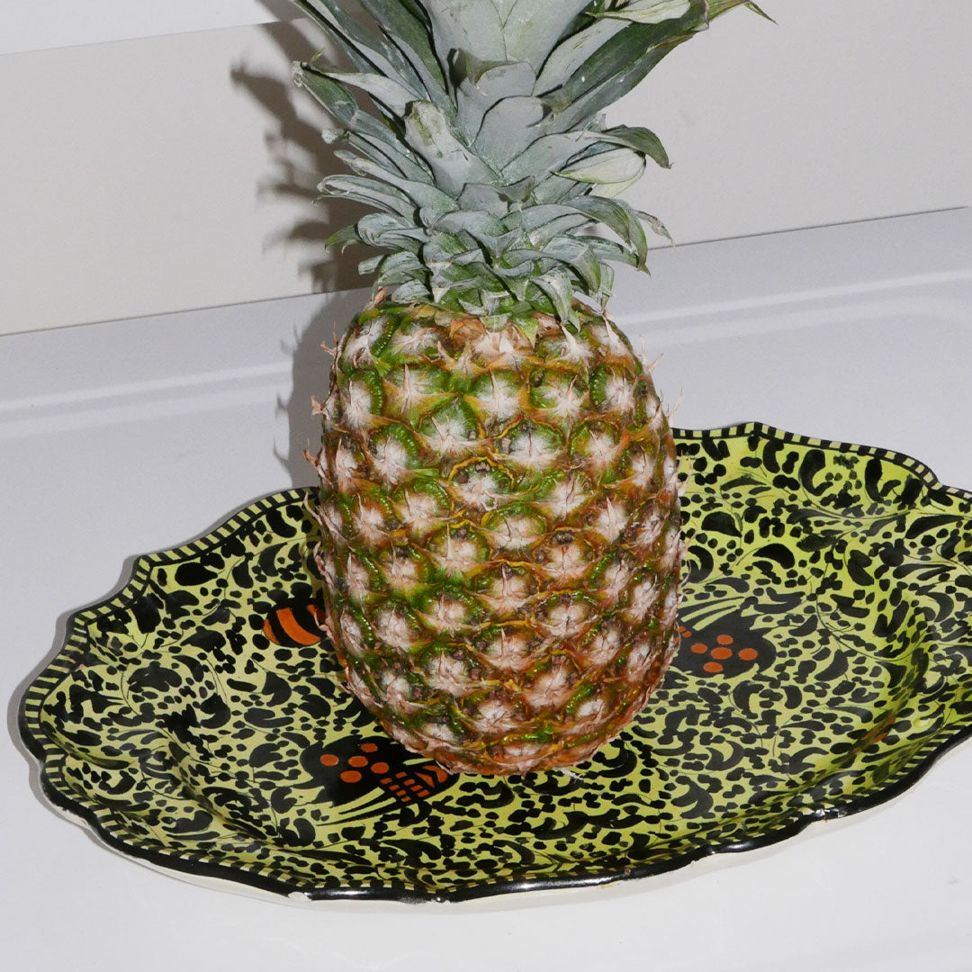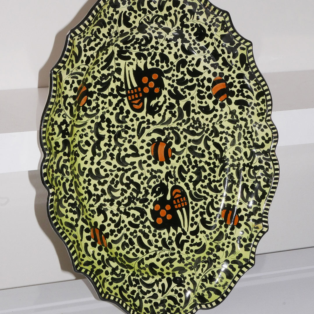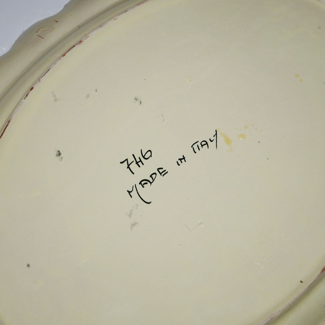 serve up some italian charm with this gorgeous ceramic oval plate. the interesting and colorful pattern is sure to add a lively touch to any dining table. buon appetito! marked made in italy.