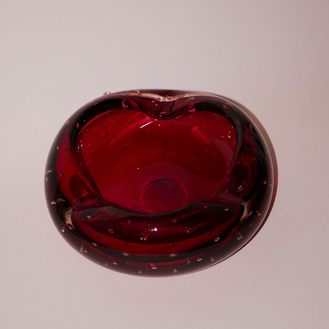 cranberry glass vintage murano glass bowl, bullicante controlled bubbles.