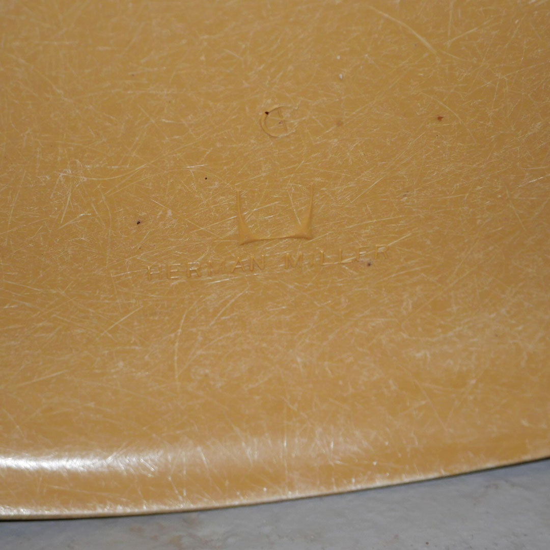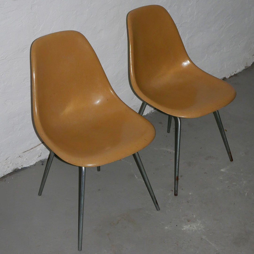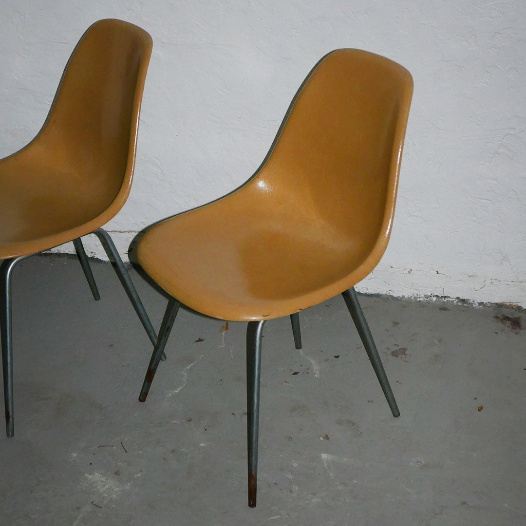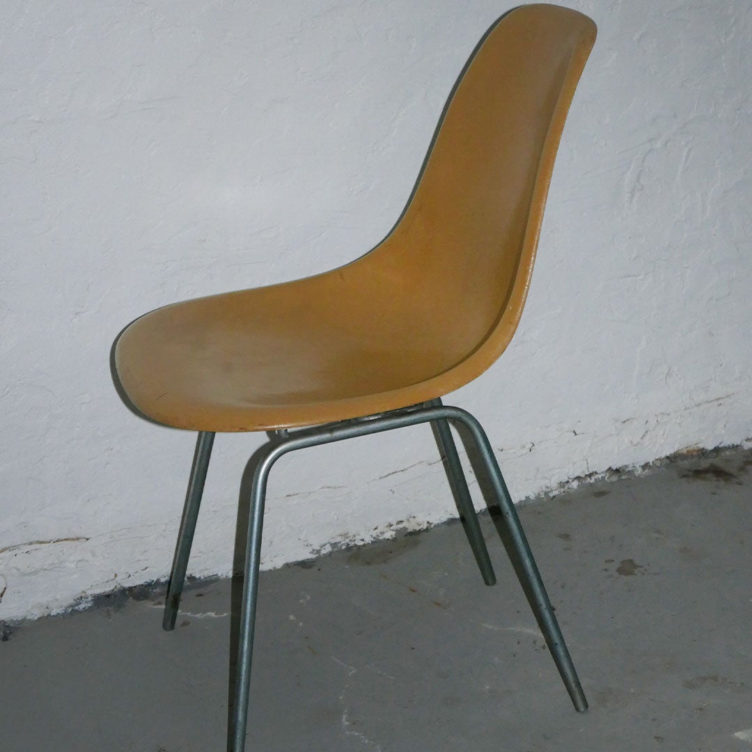 charles and ray eames herman miller USA authentic production fiberglass side shell chair in dark ochre fiberglass. this is a rare colour way! vintage from the 1960s. chairs priced individually. marked on the underside with the herman miller stamp.