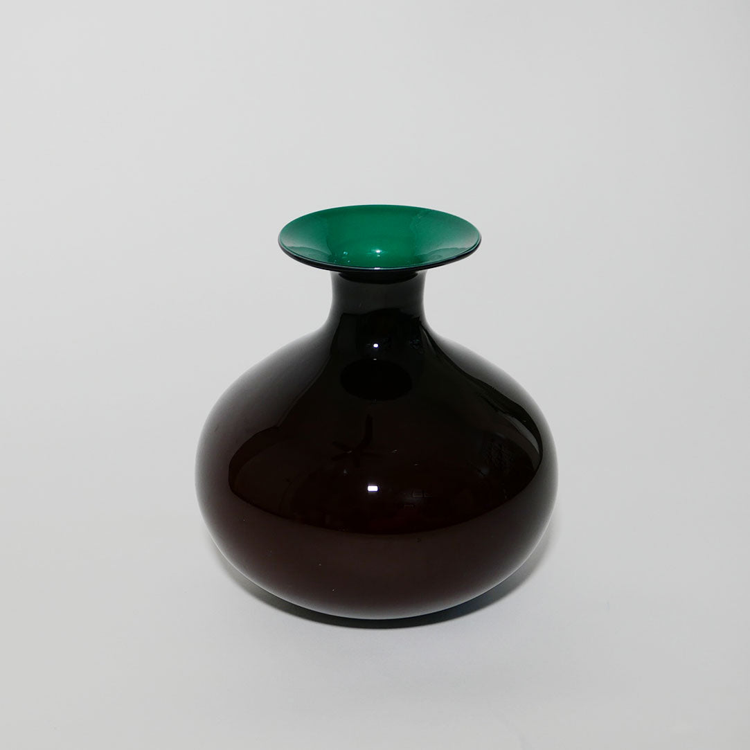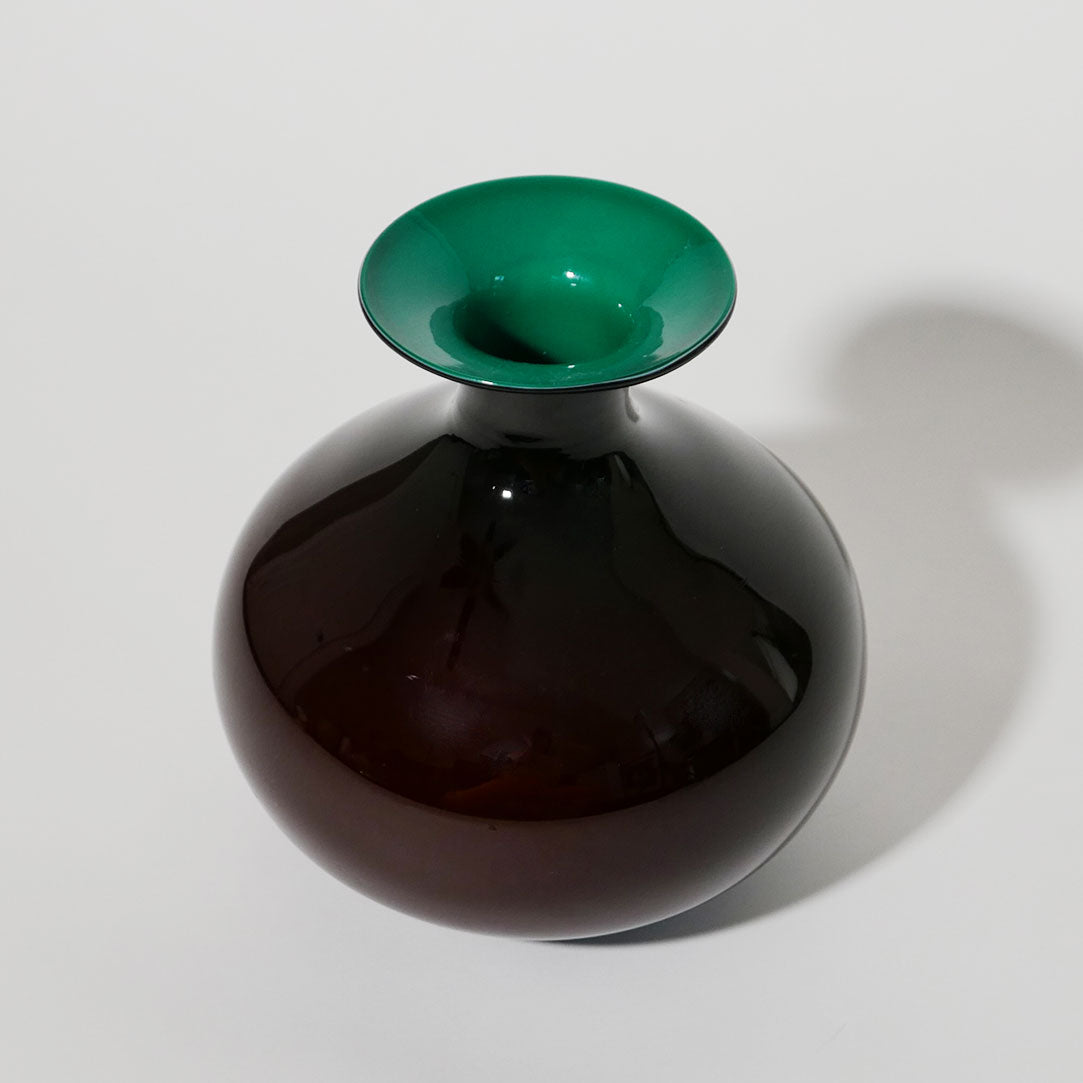 round hand blown black and teal vase