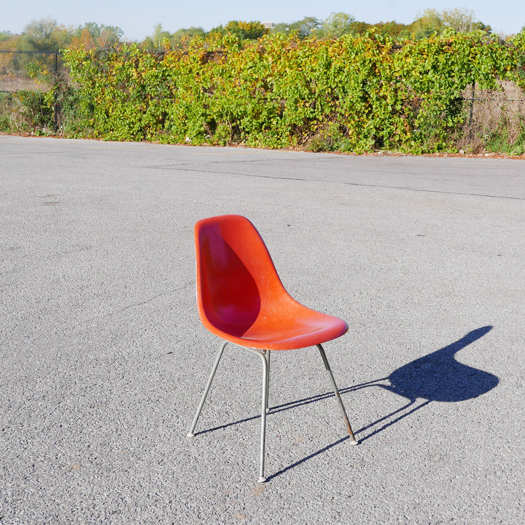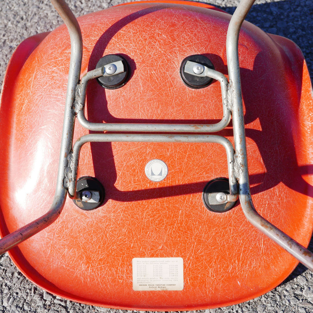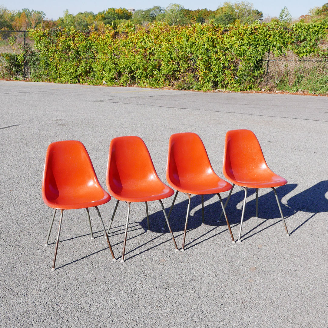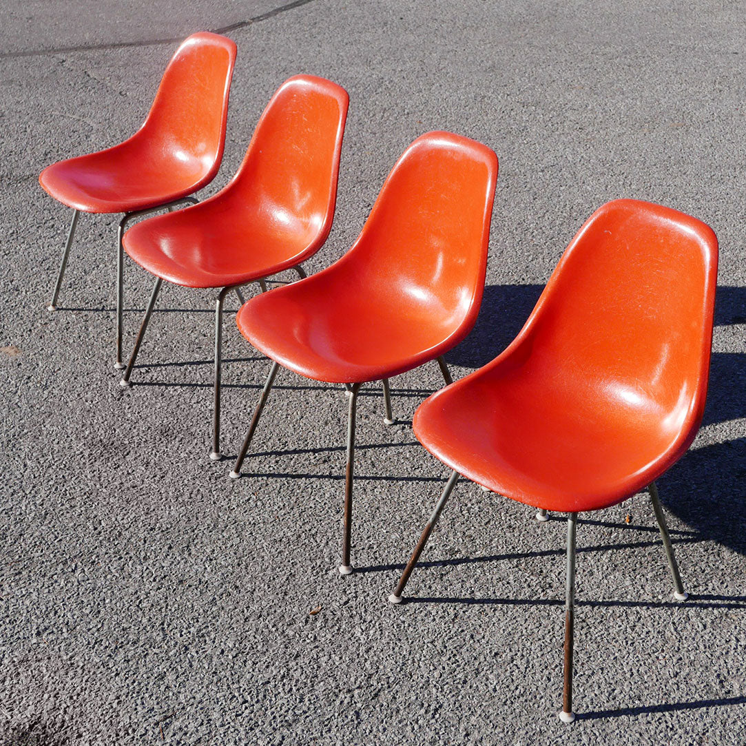 set of 4 stamped eames for herman miller fiberglass shell chairs