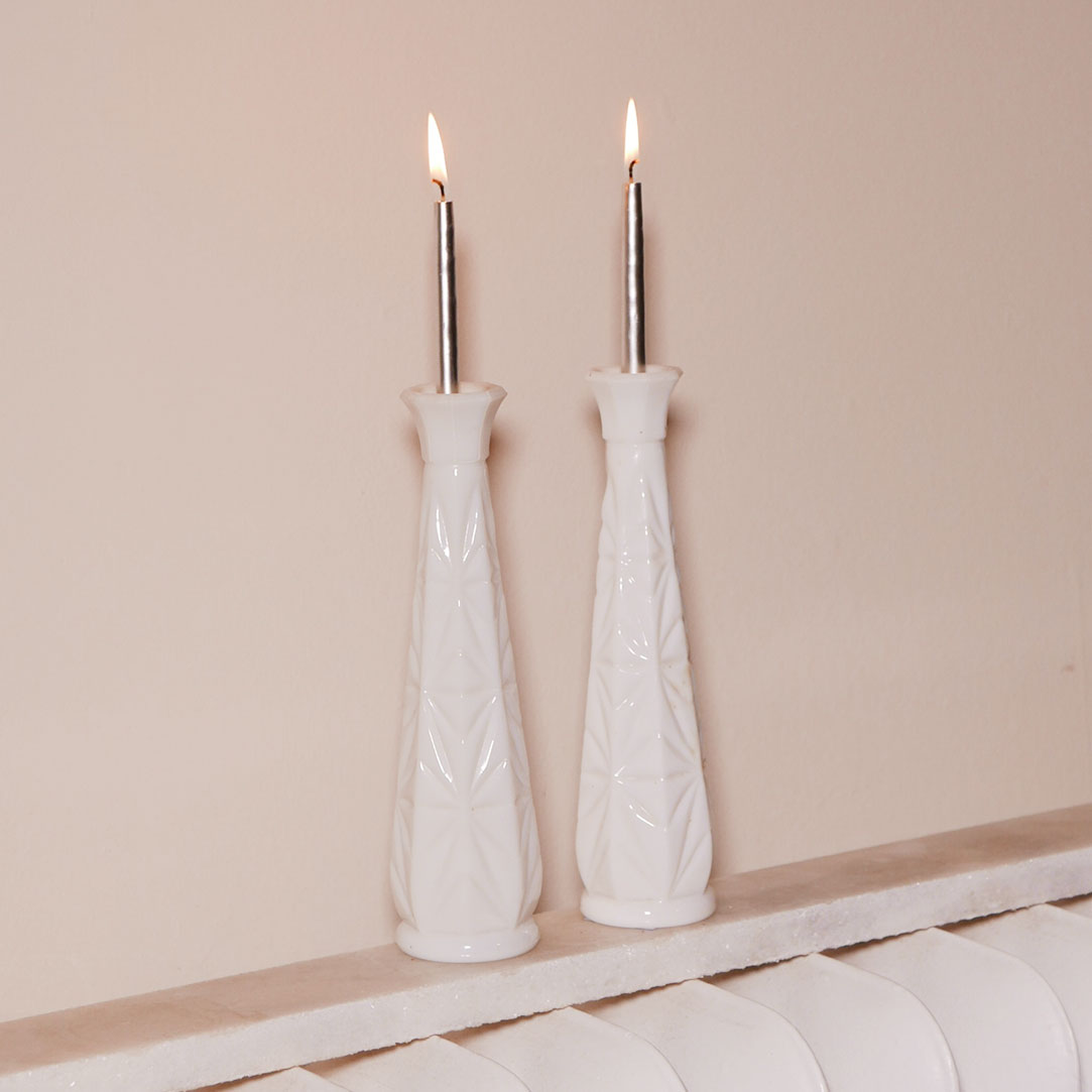 white milk glass candlesticks