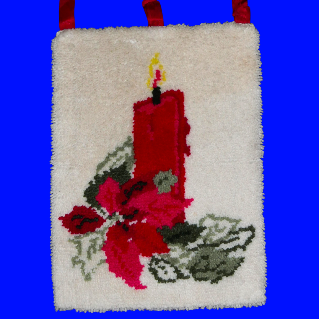 vintage latch hook rug from the 1970s, designed to hang on the wall.