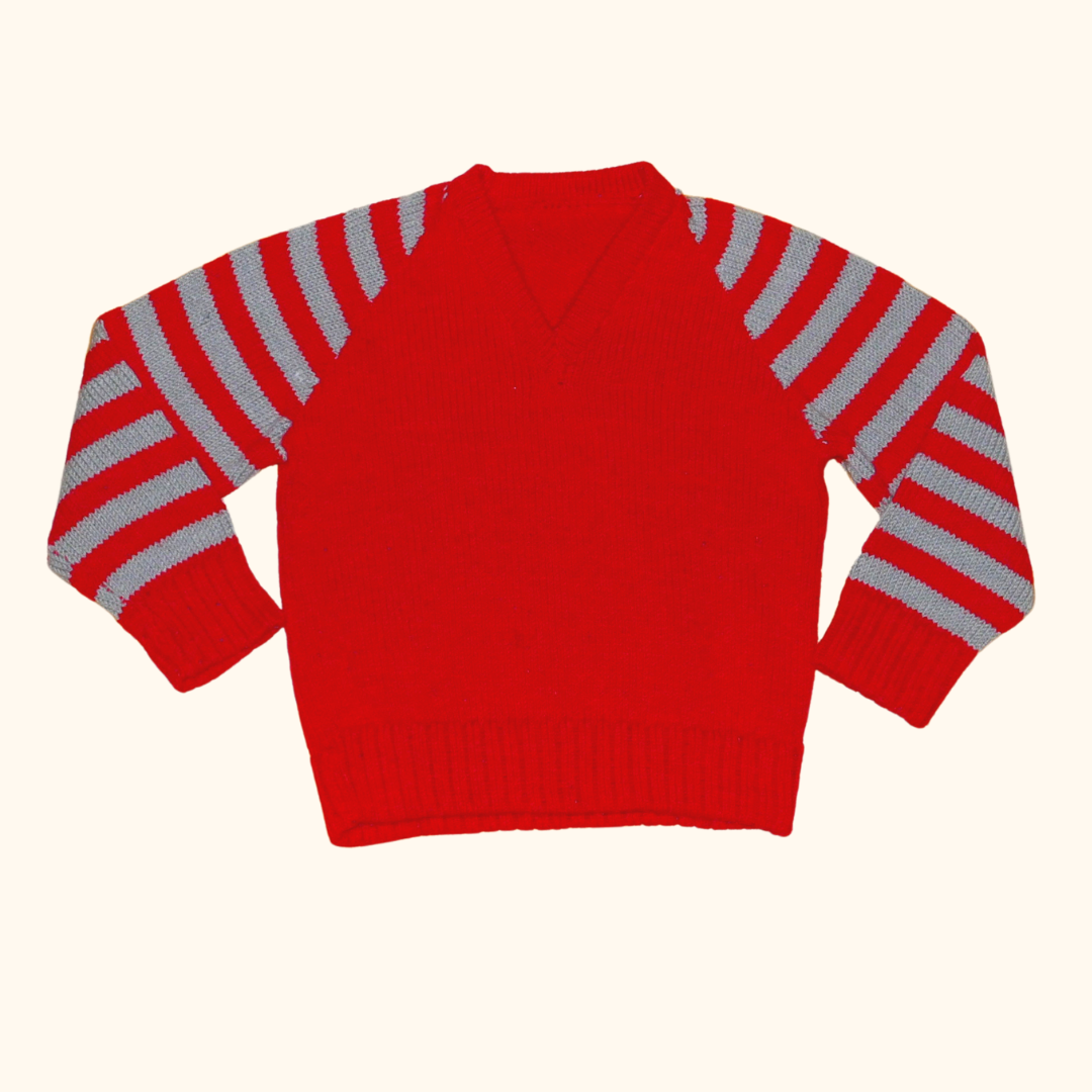 adorable knit features candy cane-striped arms and a cute v-neck for festive charm. perfectly cozy and irresistibly cute, it's the ideal choice for your toddler's holiday adventures.