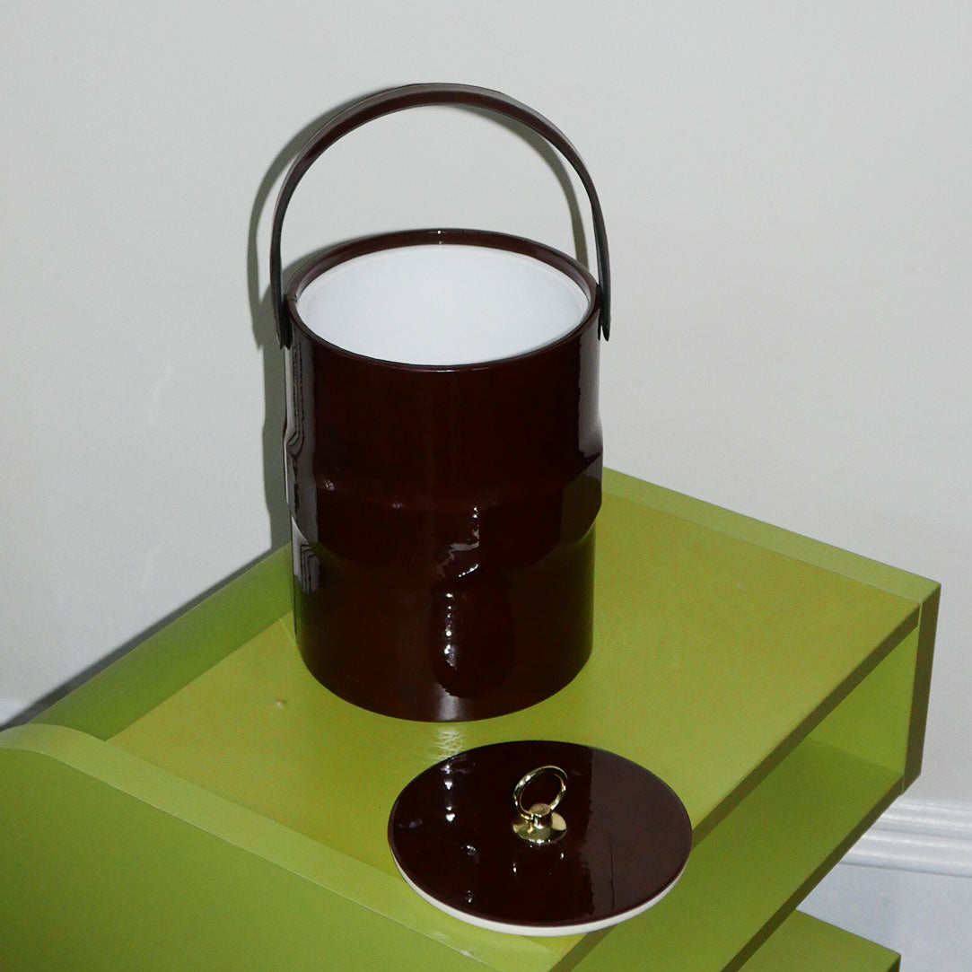 the perfect patio piece! tall ice bucket a brown vinyl finish.
